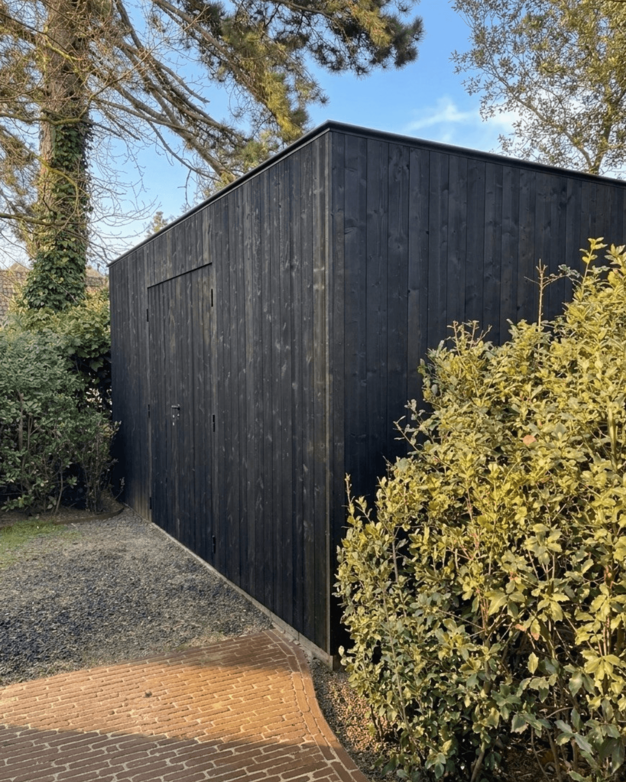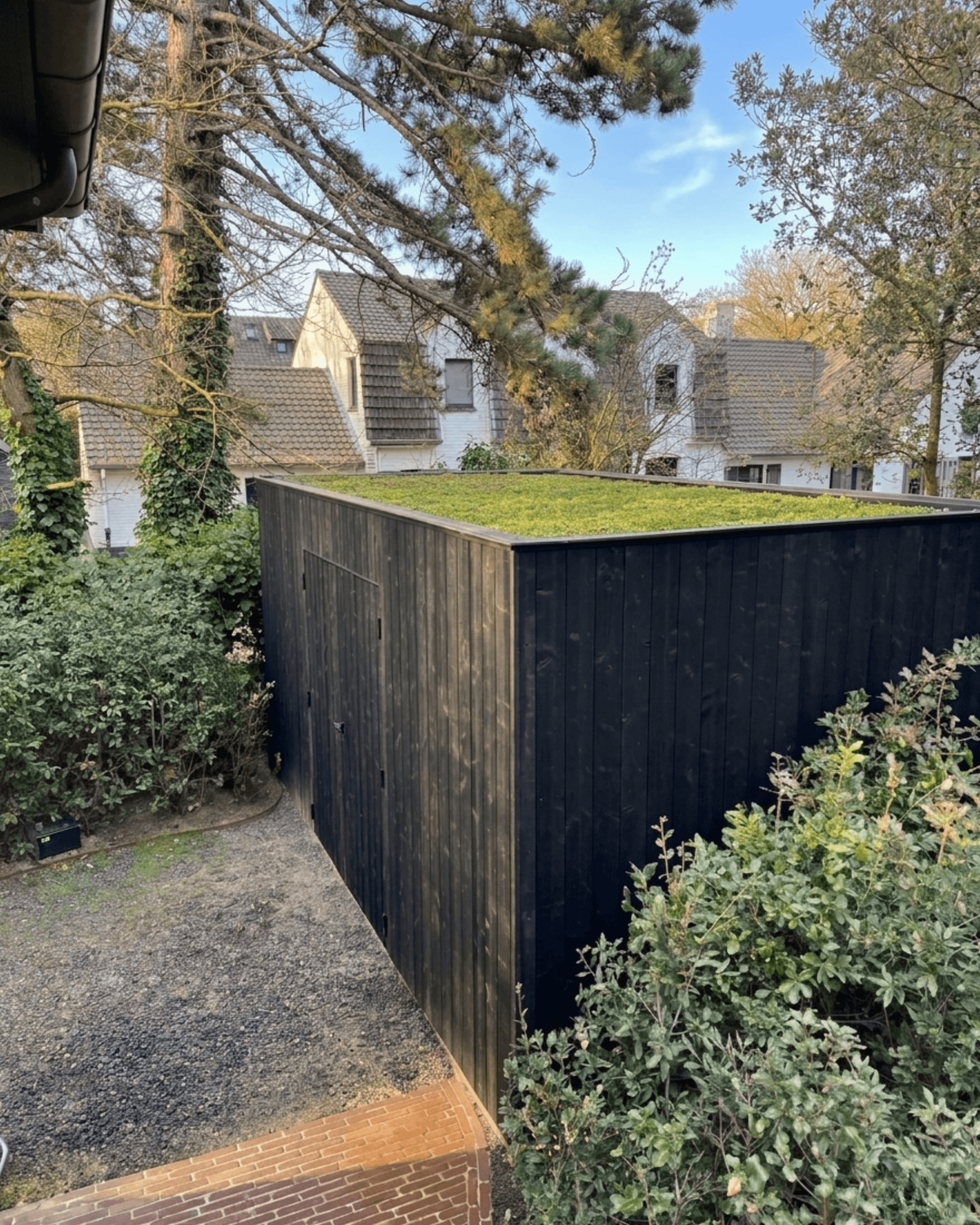 Deze moderne tuinberging in thermo den combineert een strakke uitstraling met duurzame materialen. Het hout werd thermisch behandeld en zwart gelakt, wat zorgt voor een lange levensduur en een stijlvolle, tijdloze look. Een echte meerwaarde van dit tuinhuis met groendak is de natuurlijke afwerking bovenop. Het groendak geeft de tuinberging niet alleen een warme en unieke uitstraling, maar biedt ook tal van ecologische voordelen. Zo werkt het isolerend, helpt het regenwater bufferen en draagt het bij aan meer biodiversiteit in de tuin. Een slimme en duurzame keuze voor wie bewust wil bouwen. Net zoals bij al onze realisaties staat ook hier maatwerk en kwaliteit centraal. Van de afwerking tot de indeling: alles wordt afgestemd op jouw wensen en noden, zodat je geniet van een praktische en esthetische tuinberging op maat. Op zoek naar een duurzame tuinberging of tuinhuis op maat?